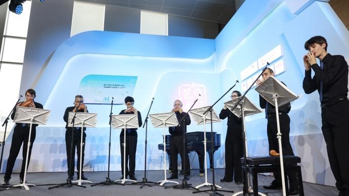 讓樂團成員產生最多興奮與好奇的“新觀衆”是——智元機器人“小新”。當陶笛手們進博會表演時,“小新”隨樂而動,跳起舞來。演出結束後,樂團成員薩穆埃萊・曼託瓦尼好奇地上前與這位“熱情觀衆”對話、觸碰:“我們親眼見證了中國科技在飛速進步。”