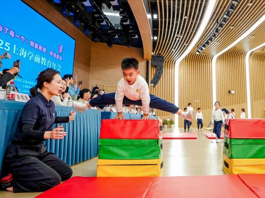 日前,在2025年上海學前教育年會中國福利會託兒所展示專場上,一些學齡前幼兒在近半小時的中高強度活動中,不僅“拿”下了這些有難度的動作,更表現出了身體的靈活性、協調性以及身體力量和平衡性,讓現場的學者和教師讚歎不已。