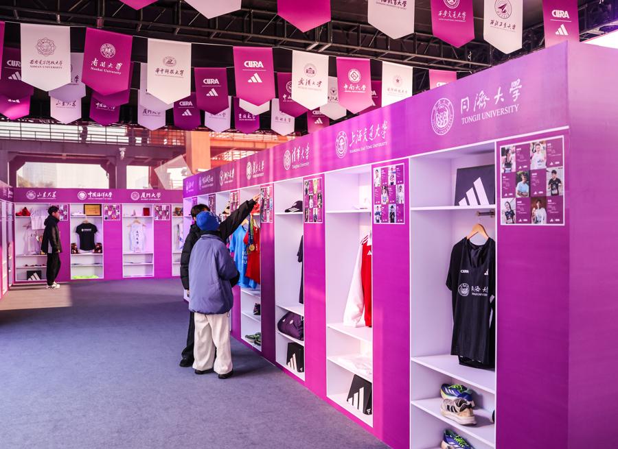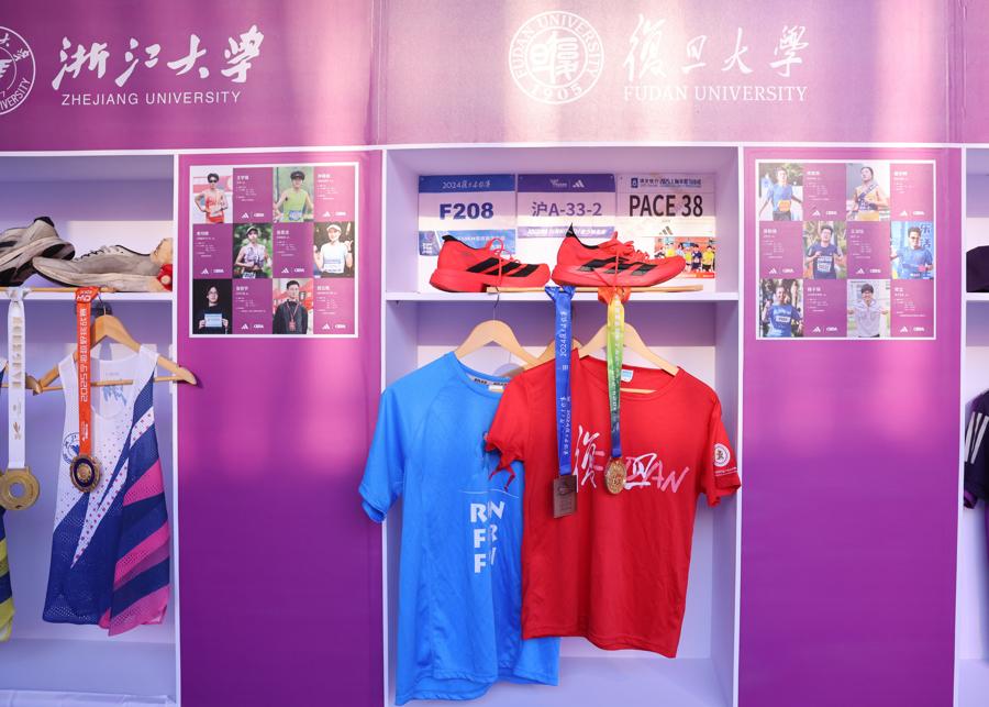場內角逐激烈,場外亮點紛呈。總決賽現場,特別設計了高校文化展示區,邀請學生跑者們親自參與各自母校展區裝扮,展區內不僅陳列學生們珍藏的各類跑步紀念品,更有來自多所晉級高校的隊服首次集體展示。