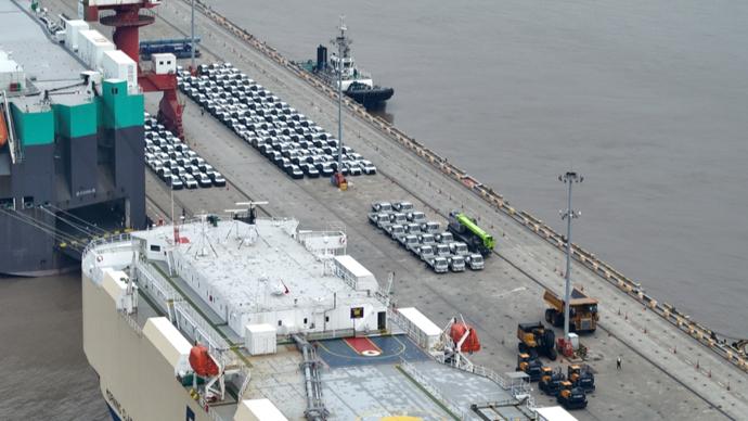 上午10點,一輛輛江淮、奇瑞、名爵、東風、金龍等品牌汽車駛上巴拿馬籍“克萊爾”號滾裝船,在港期間該輪將裝載1980多輛大中小型汽車出口駛往智利伊基克港。洋山邊檢站提供的船期信息顯示,下午2點和3點另有兩艘大型外貿滾裝船靠港,在港期間將裝載2200多輛汽車出口。碼頭堆場上停放的工程車、大巴、新能源汽車等各類待出口和中轉車輛將陸續裝船出海。在上海南港碼頭,這種多船同靠和大作業量漸成常態。
