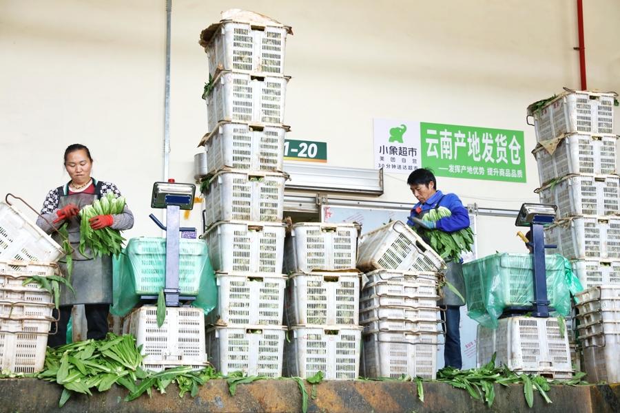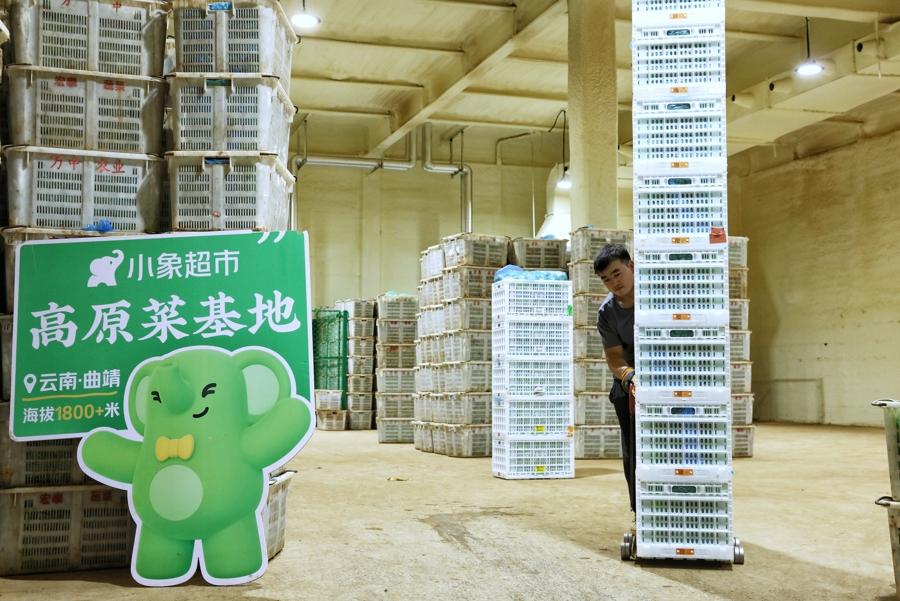 優質的蔬菜是自帶靈魂的。源頭“鎖鮮”後,雲南菜很快就在小象超市消費者端受到追捧。程皎龍說,2023年,這些高山菜最初先發往廣深地區,去年5月起,同步發往長三角和北京。上海消費者很愛這種清甜口感,如今,雲南當地每天會發出一個大掛車,裏面裝着10-12噸生菜和油麥菜,週末往往需要兩個大掛車才能滿足需求。