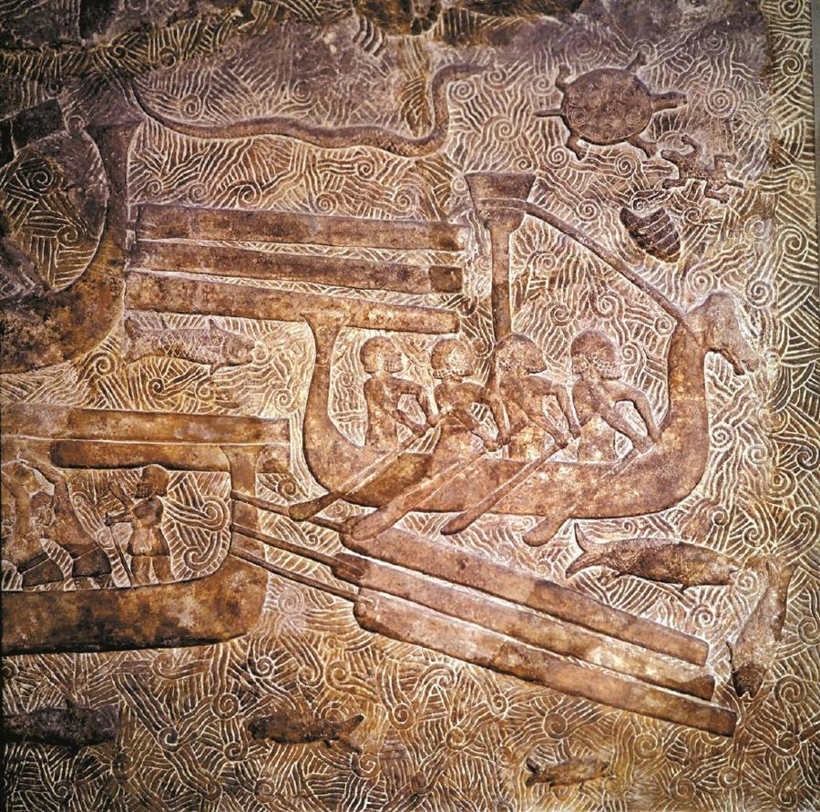 公元前8世紀的淺浮雕,描繪運送黎巴嫩木材的腓尼基船隻 現藏巴黎盧浮宮