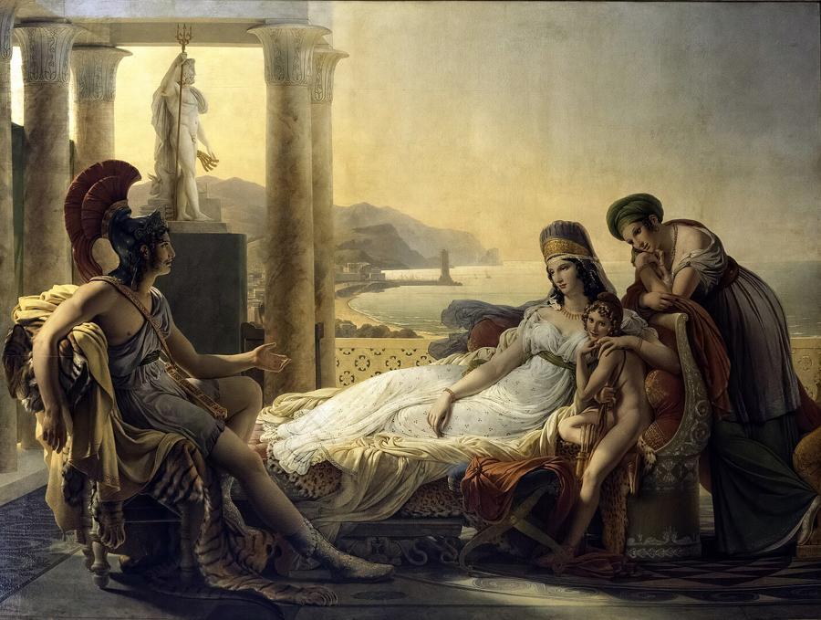 聽埃涅阿斯講述特洛伊戰爭的迦太基女王狄多-法國畫家蓋林(Guérin)創作於1815