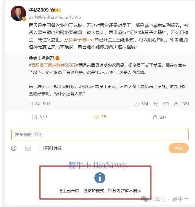 華杉稱西貝被人算計,暗示羅永浩顛倒黑白。