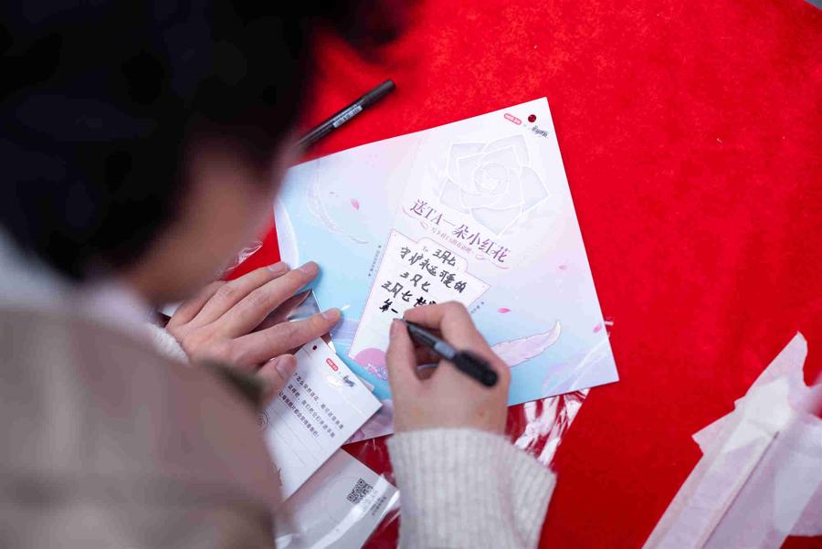活動現場還特別設置了一座“黃金裔”花牆,遊戲中的13位英雄角色立牌環繞於繁花之中,吸引衆多玩家駐足合影。玩家們在花形祝福卡上親手寫下對心儀角色的寄語,層層疊疊綴滿花牆。除車廂內的互動屏幕外,現場還鋪設了一條“英雄長路”,上面印有十三位英雄的足跡與經典臺詞,象徵着他們旅程的延續與精神的傳承;長路盡頭,玩家亦可留下自己的足跡,寓意冒險故事正由玩家親手續寫。一旁更放置了一本書本大小的實體“如我所書”留言冊,吸引大量玩家提筆書寫,將對角色的思念與祝福凝爲現實中的“劇情續章”。