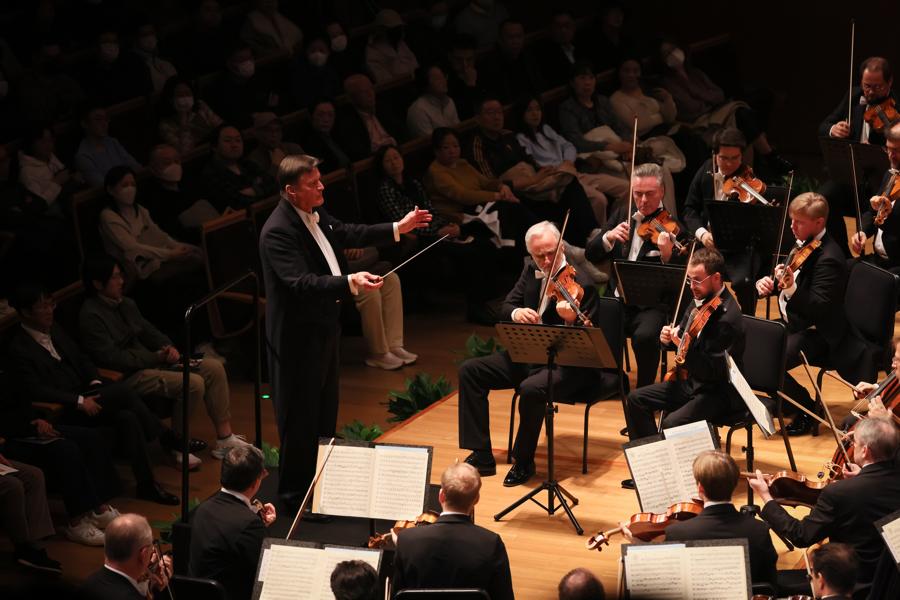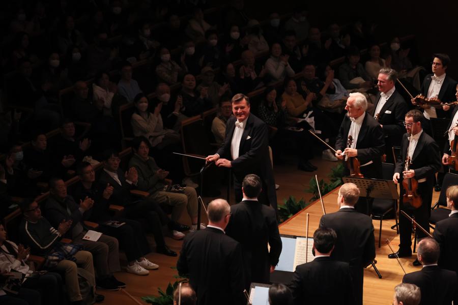 舞臺上的和聲餘韻未散,童真的迴響又爲這場藝術盛宴添了幾分柔軟。11月22日晚,上海東方藝術中心的空氣裏,飄着《藍色多瑙河》圓舞曲的悠揚。返場環節,指揮大師克里斯蒂安·蒂勒曼手中的指揮棒輕輕起落,維也納愛樂樂團的金色之聲漫過全場——這是這支頂尖名團20年來第九次亮相上海。這首奧地利民間“第二國歌”首度由維也納愛樂在滬奏響,動人旋律裏藏着老友重逢的溫情。一曲終了,雷鳴般的掌聲掀翻屋頂。觀衆席裏,10歲的王芮達攥着媽媽的手,眼裏閃着亮。
