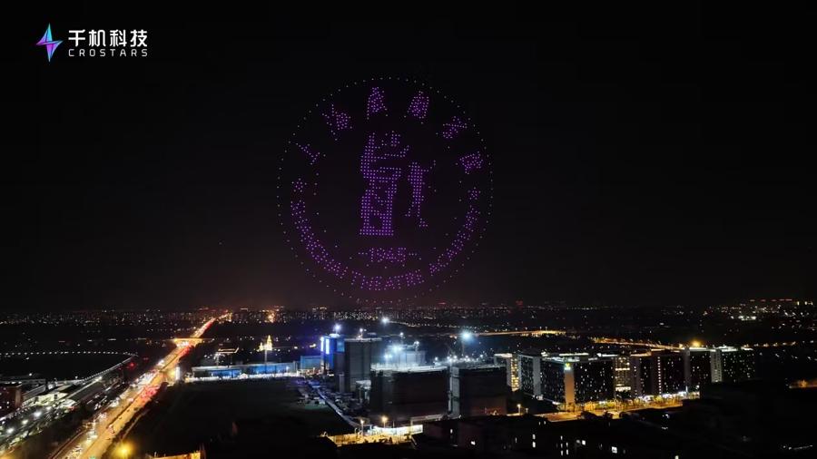 作爲校慶系列活動的科技亮點,以“戲劇之源,歷史迴響”爲主題的無人機編隊燈光秀在昌林路校區主廣場上演。