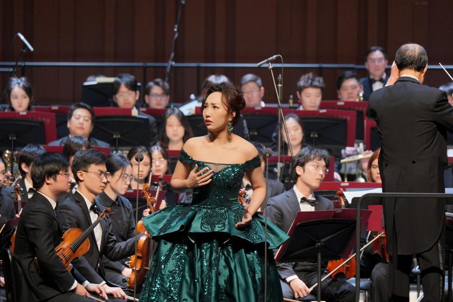 同爲第15屆中國音樂金鐘獎得主的博士研究生、女高音顧文夢,則以威爾第歌劇《命運之力》中的高難度詠歎調“安寧,安寧”和《黃河怨》驚豔全場,她的演唱兼具技術精度與藝術深度,感人至深。“本科五年打下的堅實基礎,讓我留學時能直接與國際接軌,而學校賽前提供的大量實踐機會,讓我站上賽場時毫無懼色。”她還分享了獲獎後的心境:“金鐘獎是認可更是起點,回到母校的舞臺演唱,就是想把學到的東西回饋給培養我的土壤。”