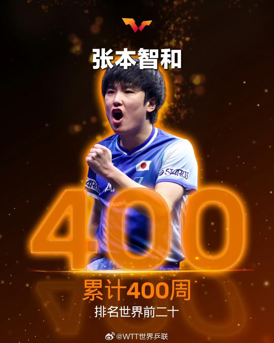 與孫穎莎一同刷新紀錄的還有日本名將張本智和,他的世界前二十累計週數突破400周。從首次亮相世界排名時的第836位,到如今成爲穩居前二十位的頂尖高手,張本智和已成長爲世界乒壇最具知名度的選手之一。本賽季,他延續強勢表現,先後斬獲三座WTT系列賽冠軍——WTT多哈球星挑戰賽、WTT薩格勒布挑戰賽冠軍,更在本土作戰的WTT橫濱冠軍賽中擊敗王楚欽,奪得男單冠軍,三座冠軍獎盃印證了其穩定的競技水準。