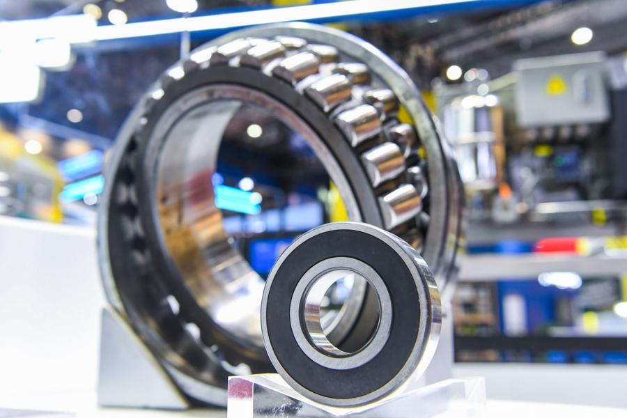 第八屆進博會上,瑞典館展出的斯凱孚中國首款近零碳軸承。本報記者 張伊辰攝