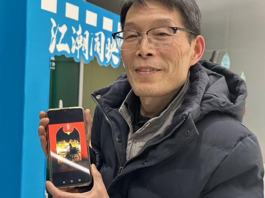 “這不僅是對我們攝影作品的肯定,更是對我們殘疾人攝影愛好者用鏡頭追逐光明、熱愛生活的最好見證,感謝這場展覽讓我們的視角被看見、被珍視。”優秀作品獲獎者謝春常30多年前就愛上了攝影,1989年在公園門口通過多次曝光拍攝的坐在輪椅上的背影,是他第一個獲獎作品,他將這件作品仔細翻拍後一直留存在手機裏。事實上,謝春常的每幅作品都藏着不爲人知的堅持,小兒麻痹症導致的右半邊肢體無力讓他需要用盡全力才能舉起單反相機,爲了防止手抖,他用帶子把右臂吊起來做支撐堅持拍攝,就這樣創作出了一幅又一幅充滿美感和暖意的作品。“我的培訓班老師從沒有把我們當作‘特殊羣體’,他們用專業和包容告訴我們:攝影無關身體是否健全,只關乎眼裏是否有光,心中是否有愛。”謝春常說,作品背後,朋友幫忙扛着設備時的並肩身影,老師在電腦前逐像素點評的專注眼神等等溫暖的瞬間,在他看來,和他拍到的江潮、晚霞、市井煙火一樣,是“殘健融合”最生動的畫面。