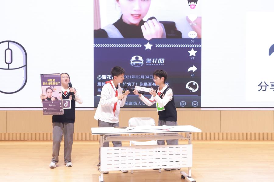 活動現場,上海市南洋模範初級中學的學生們表演了情景劇《時間都去哪兒了》,生動還原了青少年沉迷網絡的場景,直觀展現了網絡對其成長的深層影響。