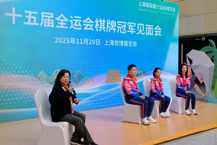 作爲上海國際智力運動博覽會的重要活動之一,第十五屆全國運動會羣衆比賽棋牌項目冠軍見面會11月29日在世博展覽館二樓舉行。王琛、徐亦辰、徐銘蔚、李詩怡、樓明慧、茅豔婷、楊玲依、江奕萱、徐彤等九位全運會冠軍出席見面會,與棋牌愛好者們面對面交流。