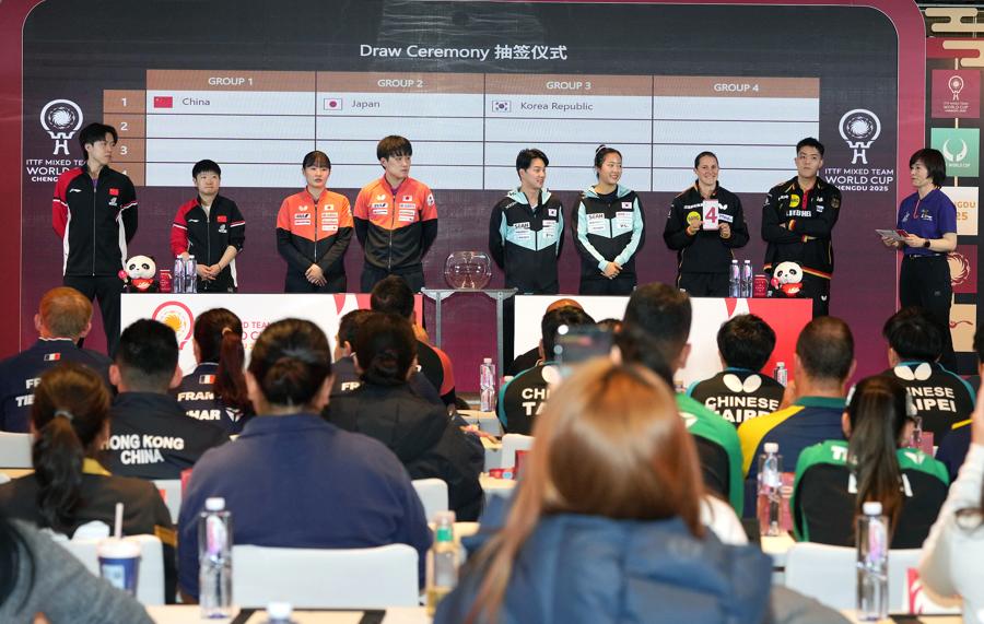 2025年國際乒聯混合團體世界盃第一階段抽籤儀式11月29日在成都舉行。中國隊由孫穎莎、王楚欽參加儀式,拿起象徵東道主身份的1號籤位。