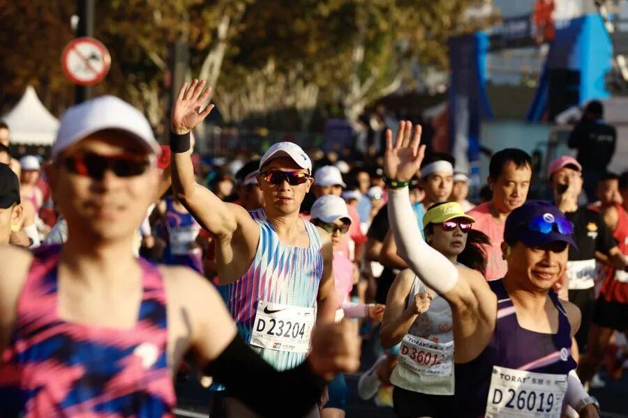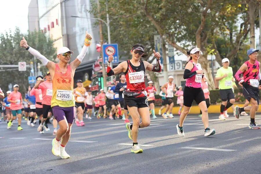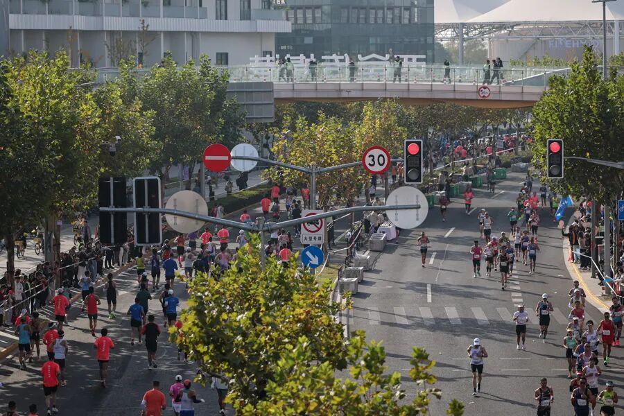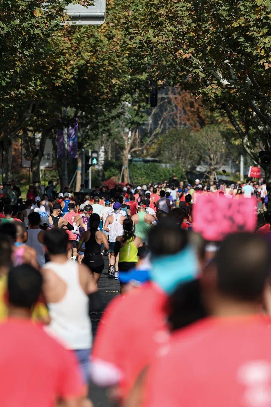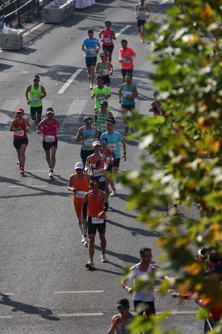 2.3萬名跑者在42.195公里的賽道上用腳步感受城市脈搏,與斑斕秋景共同繪就一幅屬於申城的活力畫卷。