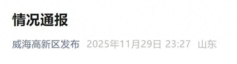 11月29日晚間,山東威海高新區聯合調查組發佈情況通報。