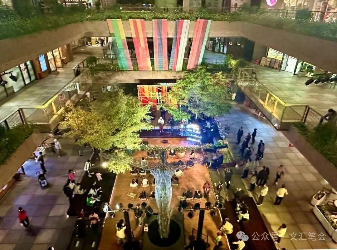 從地鐵四號線臨平路站出來,就是瑞虹新天地。下午五點不到,幾家飯店門口已經擺出椅子,坐滿一溜排隊取號的食客。順着開放式的街區走進去,如走進被立體摺疊的小鎮,除了商鋪,還有穹頂天幕、立體植物園、迷宮和滑梯等一切時興的元素。一支樂隊正在中庭演唱,歌聲漫延出來的時候,外頭天光暗下去,燈光次第亮起。有一剎那,我忘記自己置身一家商場,以爲是在一個居民區的空地,比如說,某個街心花園。過去,此地有街心花園嗎?應該沒有吧,印象中這裏是如此寸土必爭,每樣東西上都疊加了什麼,每個空間裏都長滿了什麼,最後,只餘窄窄的走道,相向難行……