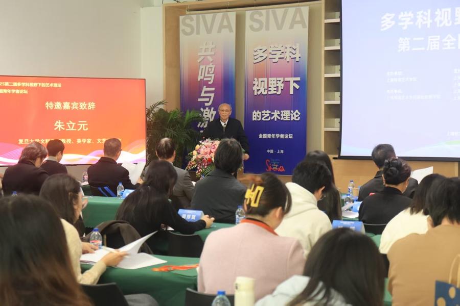 復旦大學文科資深教授、上海市哲學社會科學“學術貢獻獎”獲得者朱立元作爲特邀嘉賓發表主旨演講,他對青年學者寄予厚望:“大家在交流探討中碰撞新思想、收穫新創見、實現新突破,通過多學科視野與藝術理論學科的深度互動,推動理論研究與實踐應用的雙向繁榮。”