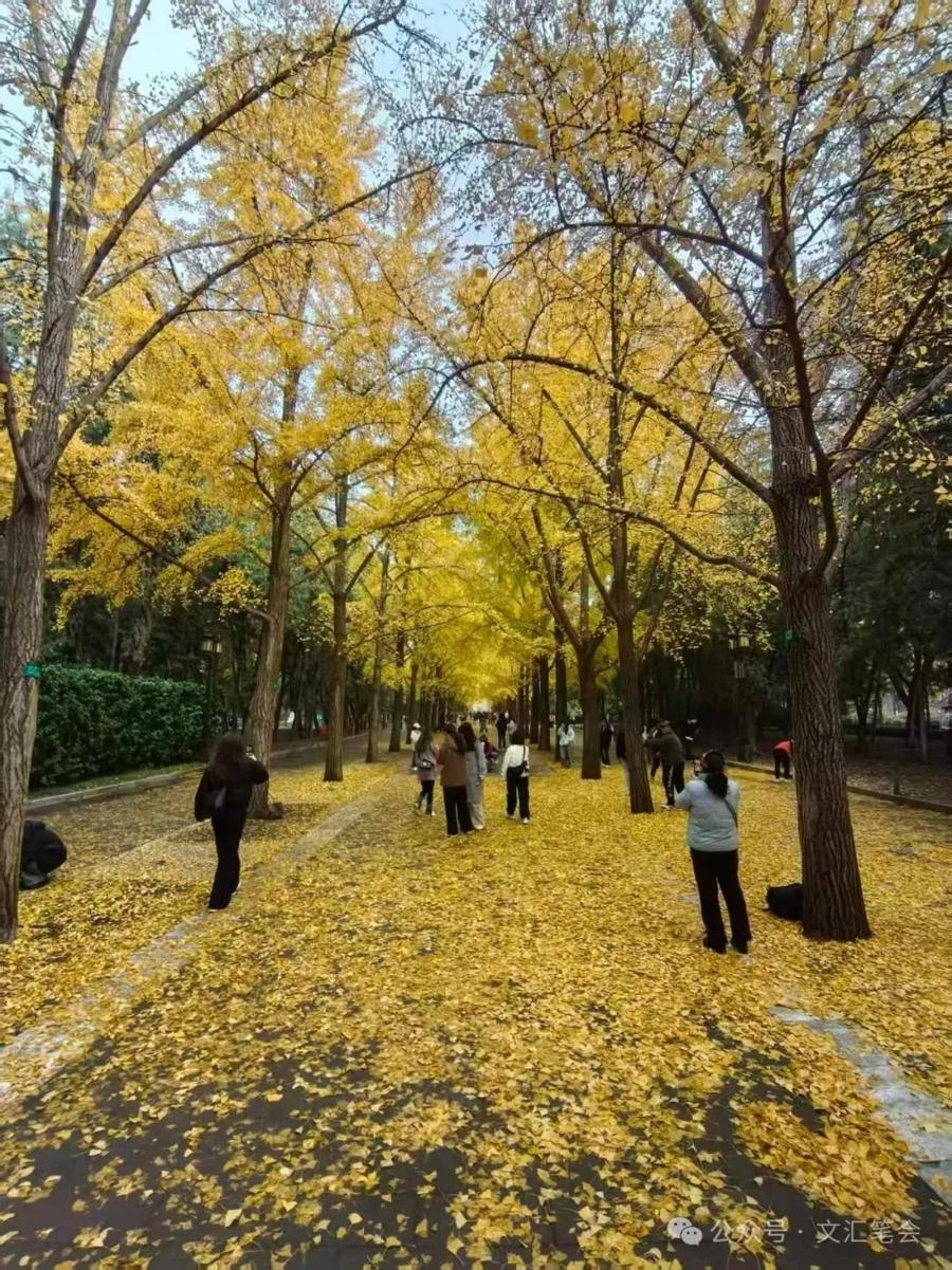 終於有一天,我忘了是第幾次走進如今的地壇,手裏揣着史鐵生的那本書。我從最西邊的牌樓往裏走,這是明清時期皇帝祭祀時進入地壇的傳統路線。經過一段不太長的叫廣厚街的小徑和一重外壇牆,就到了售票的壇門。史鐵生在15年中大概也多次走過這樣一段路進入地壇吧,只不過那時的地壇很荒疏和蕭索,且不收門票罷了。所以文章裏纔有了那個每日穿行公園上下班的女工程師。秋天的北京有許多欣賞銀杏樹的地點,其中就包括地壇。今天人們最喜歡到地壇遊覽的季節就是秋天,特別是銀杏葉由綠轉黃至紛紛凋落的時刻,幾乎是地壇遊人最多的時候。人們或拾起一枚葉子舉向天空,或是捧起一大把黃葉向上拋撒,做出各種時尚的打卡姿勢拍照留影。中央甬路的古柏下,是一簇簇的鴿子逡巡着尋覓啄食遊客撒下的一把把鴿糧。然而,這些手舉相機或手機的人在按下快門的一刻,或許難以想到一個作家與這座園子有着宿命般的羈絆。