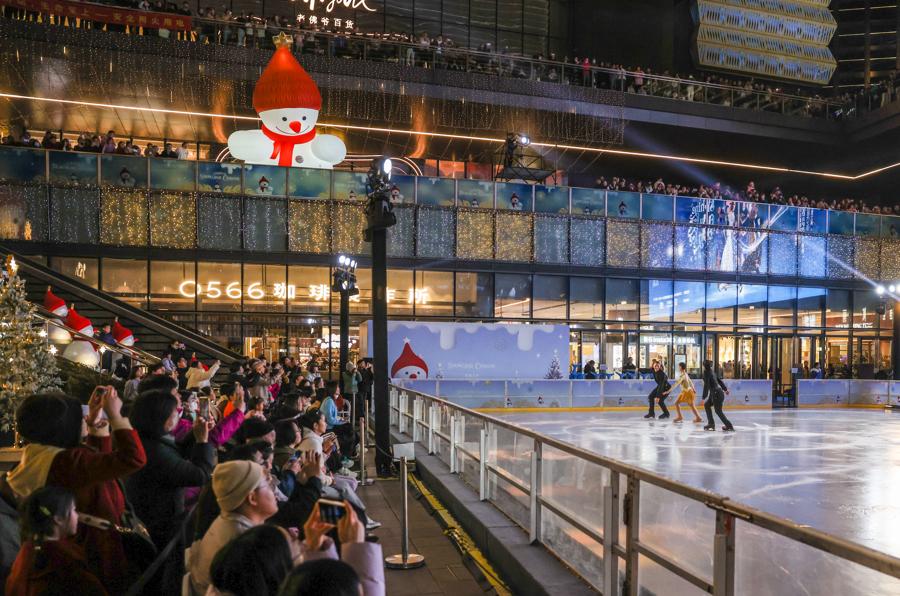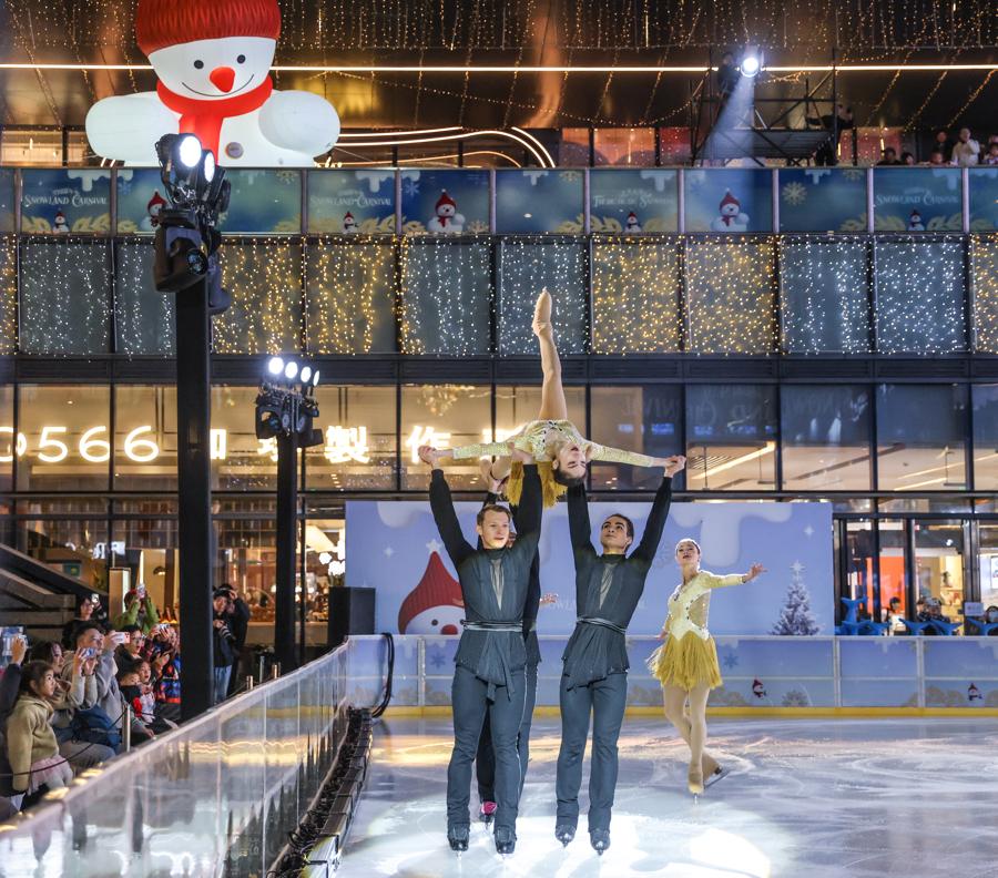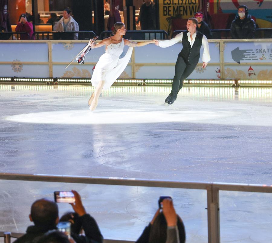 記者在現場看到,陸家嘴中心L+Mall下沉廣場變身冰雪舞臺,來自歐美及中國的頂級冰舞藝術家,聯袂花樣滑冰世界奧運選手、冠軍名將,共同演繹一場世界級冰舞大秀,織就冬日限定舞臺,爲浦東區域注入璀璨冬韻。