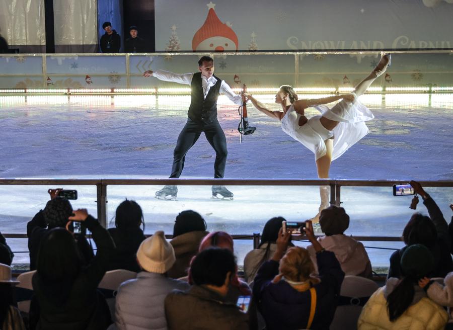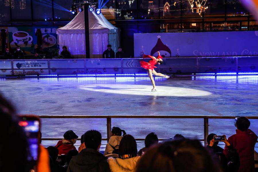冰刃劃出的光影在透明冰面上交錯閃動,腳邊躍起的冰屑與舞者擦身而過的風聲交織在一起,營造出極具沉浸感的觀演氛圍。整場冰舞表演讓廣場化爲一個具備真實質感的“沉浸式冬季劇場”,也讓這座城市廣場成爲浦東今冬最引人注目的風景之一。隨着11月30日起“樂滑之夢冰樂園”冰場向公衆正式開放,市民遊客將有機會完成一場從觀衆席邁向冰面的冬日體驗,無論是嘗試旋轉、慢速滑行,或是與朋友一起並肩向前,一步一步進入屬於自己的“雪國劇情”。