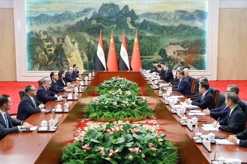 8月30日,習近平會見出席上合峯會的埃及總理馬德布利。圖源新華社
