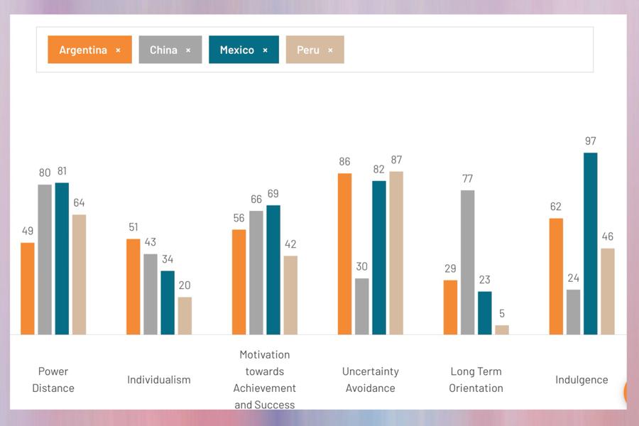 六個維度的中國和拉美文化差異表。嘉賓提供