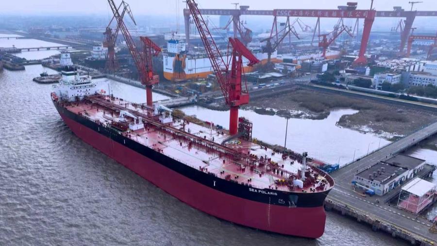 12月1日,中國船舶集團旗下上海外高橋造船有限公司爲挪威Frontline公司建造的15.8萬噸蘇伊士型原油輪“SEA POLARIS(海洋北極星)”輪正式簽字交付。至此,2025年外高橋造船順利交付29艘船舶,累計270.65萬載重噸,以超額完成7艘的優異成績交出了一份亮眼的答卷。交付船型涵蓋11.4萬噸阿芙拉型成品油輪19艘(含1艘全球首艘風帆助推型)、15.8萬噸蘇伊士型原油輪2艘、汽車運輸船(PCTC)7艘,以及7000TEU集裝箱船1艘。