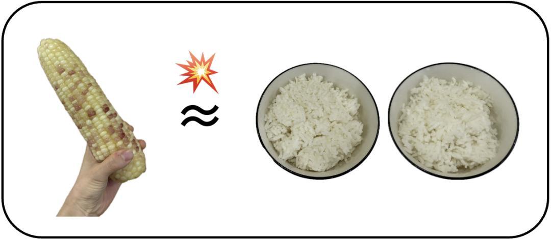 經測算,喫完一根250克(半斤)的花糯玉米,熱量高達400千卡,頂得上滿滿一盒外賣的米飯,如果換成家裏的碗,相當於兩碗米飯。