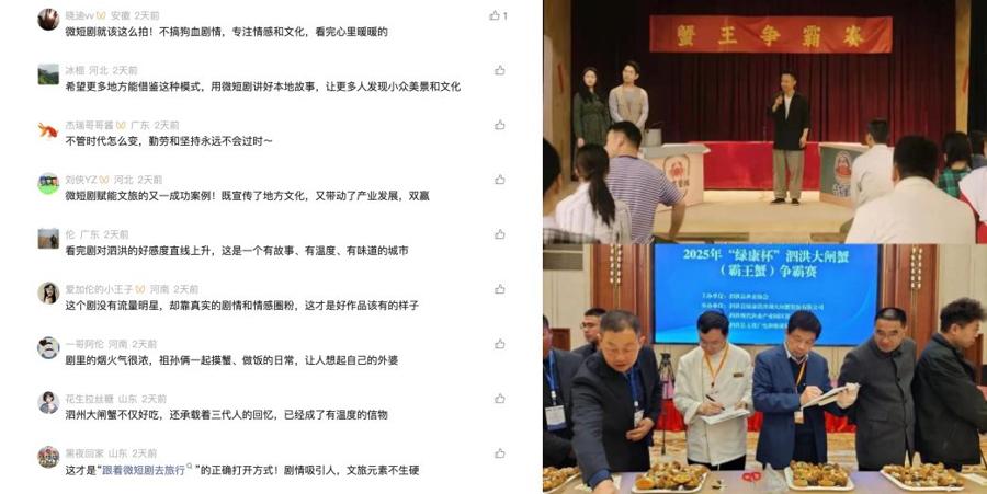 更重要的是,該劇讓微短劇成爲地域IP的“孵化器”。外婆的蟹塘成爲鄉村旅遊標誌性品牌,跨時空姐妹情成爲泗洪文旅的情感標籤,非遺技藝通過劇集獲得更廣泛的傳承與創新可能。2025年前三季度,泗洪接待遊客871.3萬人次、旅遊收入81.2億元,同比分別增長8.9%和11.5%,這份數據印證了模式實效。它將內容價值轉化爲IP價值,再升級爲產業價值,讓微短劇成爲推動地域經濟、文化、旅遊協同發展的“催化劑”,實現從流量到留量的蛻變。