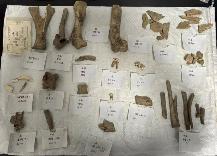 琉璃河遺址城北平民墓M2226填土內出土各類動物骨骼。(李志鵬供圖)