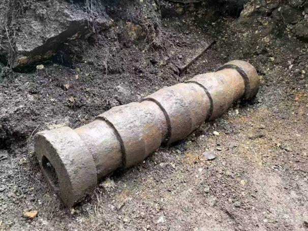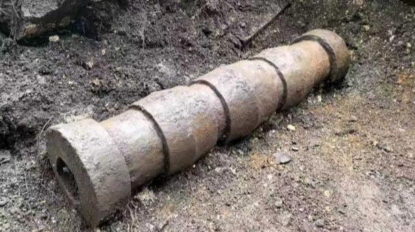 箭扣五期長城考古中發現的崇禎五年火炮。(尚珩供圖)