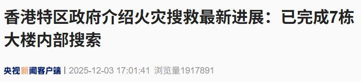 香港大埔火災最新遇難人數公佈,目前已完成了7棟大樓的內部搜索