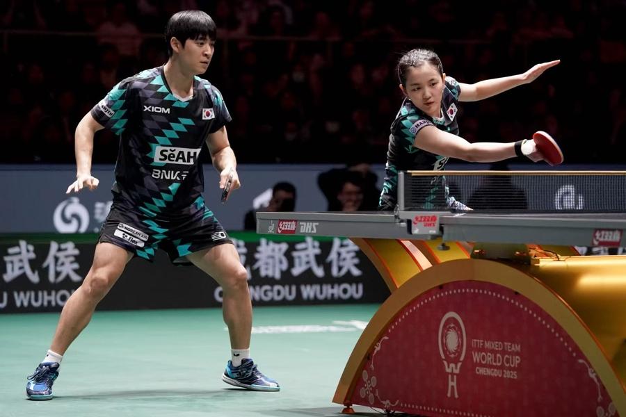 也許因爲一日雙賽,中韓兩隊都有所保留。去年混合團體世界盃上,韓國隊曾在第二階段給國乒造成最大麻煩,在混雙、女單和男雙上,他們從國乒手中奪走4局;去年決賽,韓國混雙趙大成/申裕斌再從國乒手中奪走一局。但隨着國乒混雙組合愈發成熟,女單、男單正常發揮,這樣的局面,在今天不再發生。