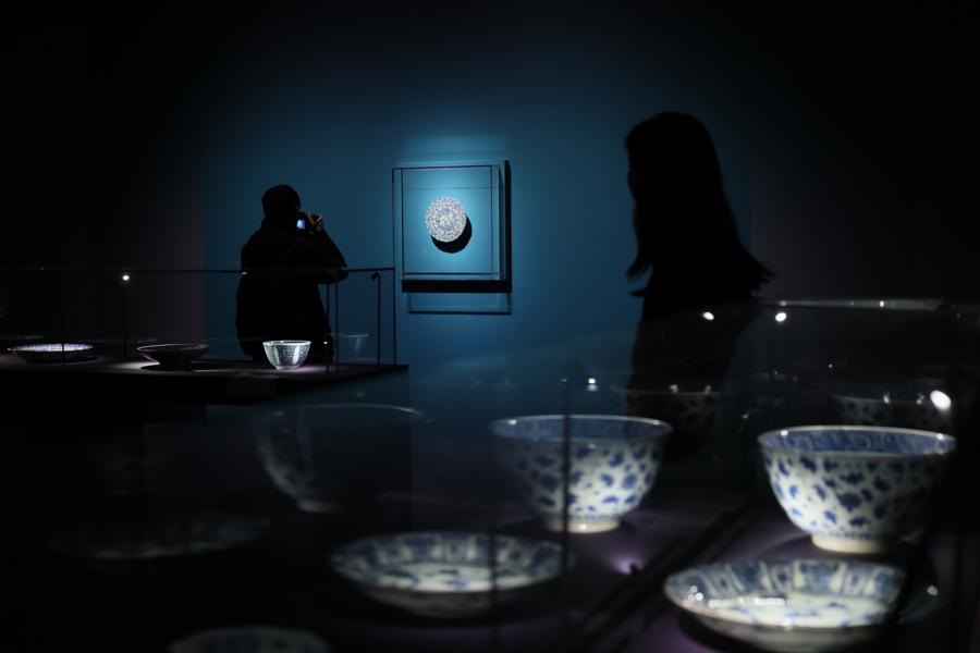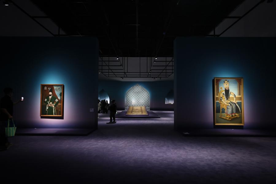 率先開放預展的,是這個展覽的第二個展廳,聚焦伊朗藝術。走進展廳,最先映入眼簾的一些展品看得人們格外眼熟。它們頗有些類似中國的青花瓷,其上的紋飾竟然也出現了龍、牡丹等中國傳統圖案。越往裏走,會發現展品越顯出異域風情。不少瓷器的底部呈現出金屬色彩,看上去閃着微光,圖樣出現了形形色色繁複細密的阿拉伯紋飾,色彩也豐富起來。“伊朗藝術的確從中國藝術中汲取了很多的靈感,進而逐漸融合本土特色,創作屬於自己風格的作品。”赫農說。