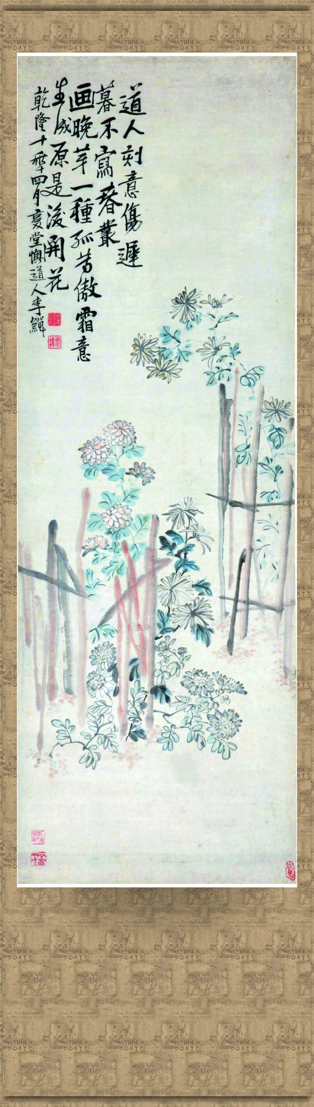李鱓籬菊圖軸(自題詩:道人刻意傷遲暮,不寫春叢畫晚芽。一種孤芳傲霜意,生成原是後開花。)選自浙江博物館“萬流景仰——紀念夏衍誕辰125週年暨捐贈展”