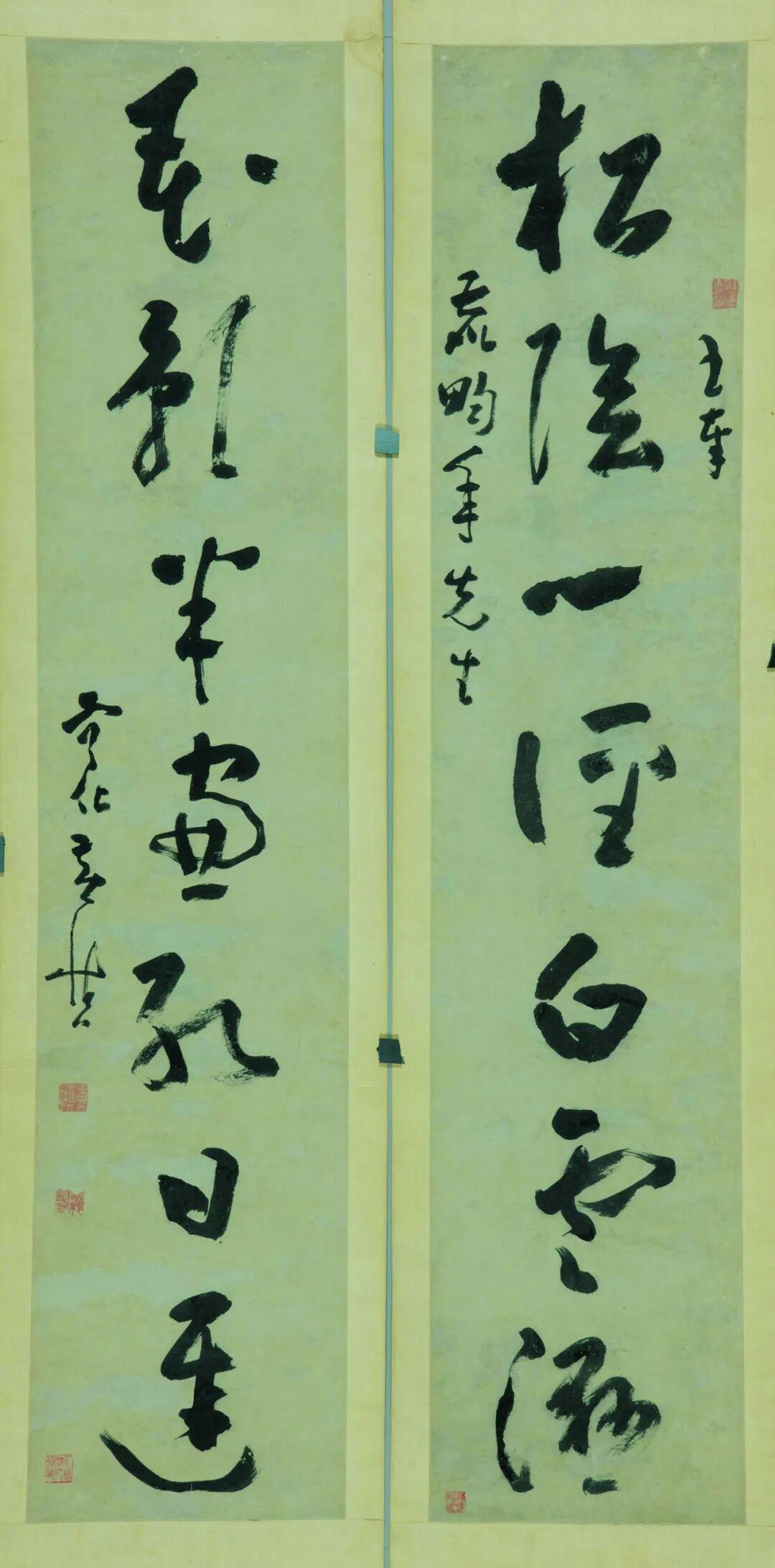 清黃慎行書七言聯(松陰一徑白雲溼,花影半簾紅日遲),選自浙江博物館“萬流景仰——紀念夏衍誕辰125週年暨捐贈展”
