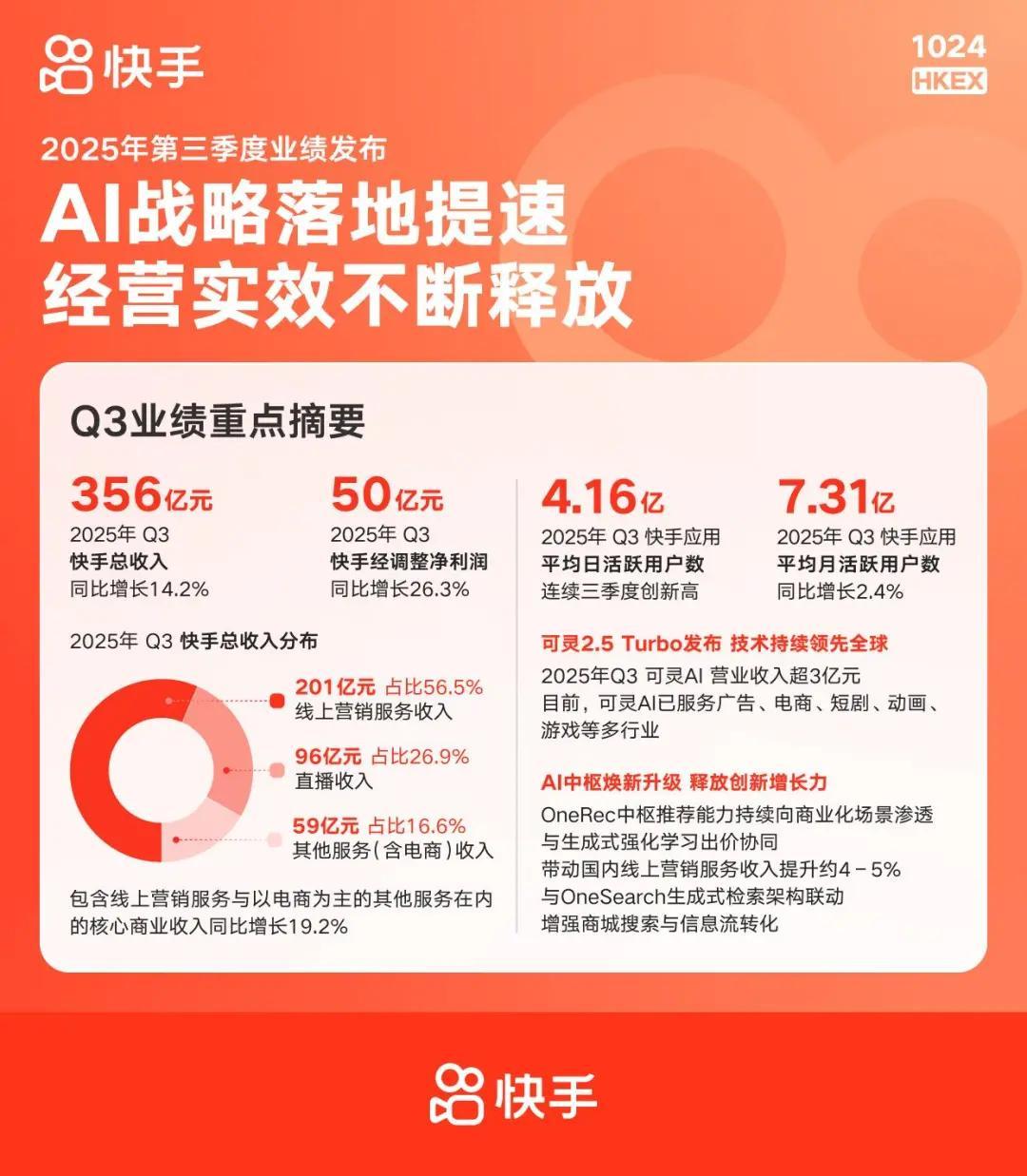 近日,快手發佈的2025年第三季度財報顯示,其旗下的AI創意生產力平臺“可靈AI”單季度營收已突破3億元。“可靈AI”作爲能夠服務於AI畫面、視頻及文本生成的平臺,正將AI漫劇視爲快速拓展業務的重要抓手。今年以來,快手已推出一系列舉措,鼓勵創作者使用其工具進行內容生產。