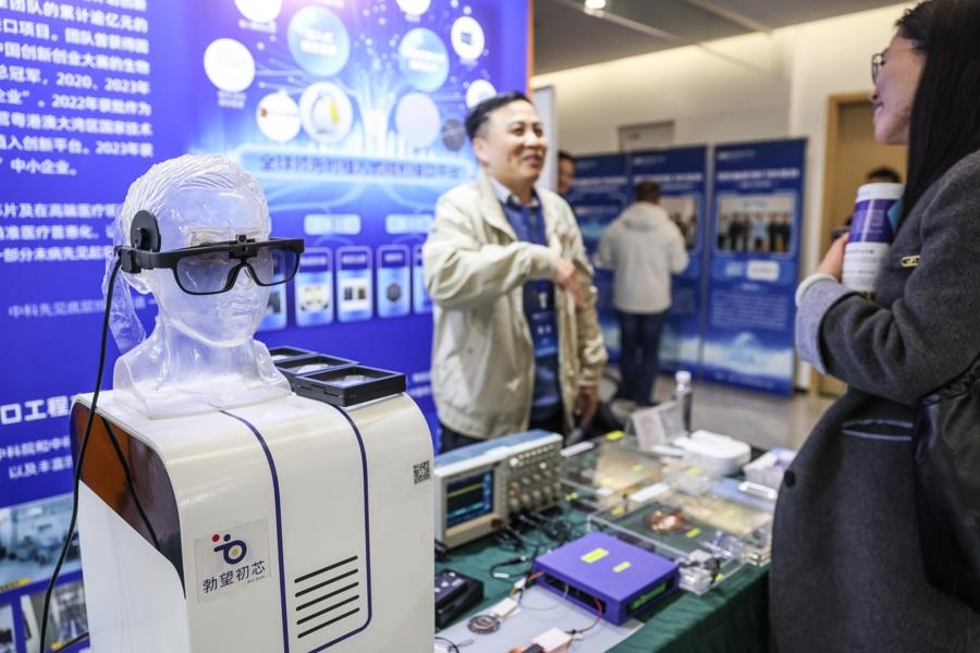 圖爲中科先見醫療帶來爲視障人羣研發的腦機接口解決方案。