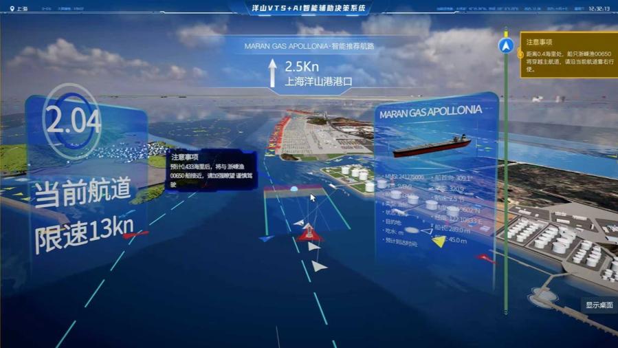 10時15分,“阿波羅尼亞”輪航經黃澤洋燈船,進入洋山港主航道。在其進港全程,洋山港海事局自主研發的人工智能系統“VTS精靈”開啓實時智慧導航模式,通過整合多源數據、智能感知航行環境、自動生成航行建議,爲船舶提供從航路選擇、航速調整到風險預警的全鏈條數字化導航支持,實現了對重點船舶的全程、動態、精準監護。