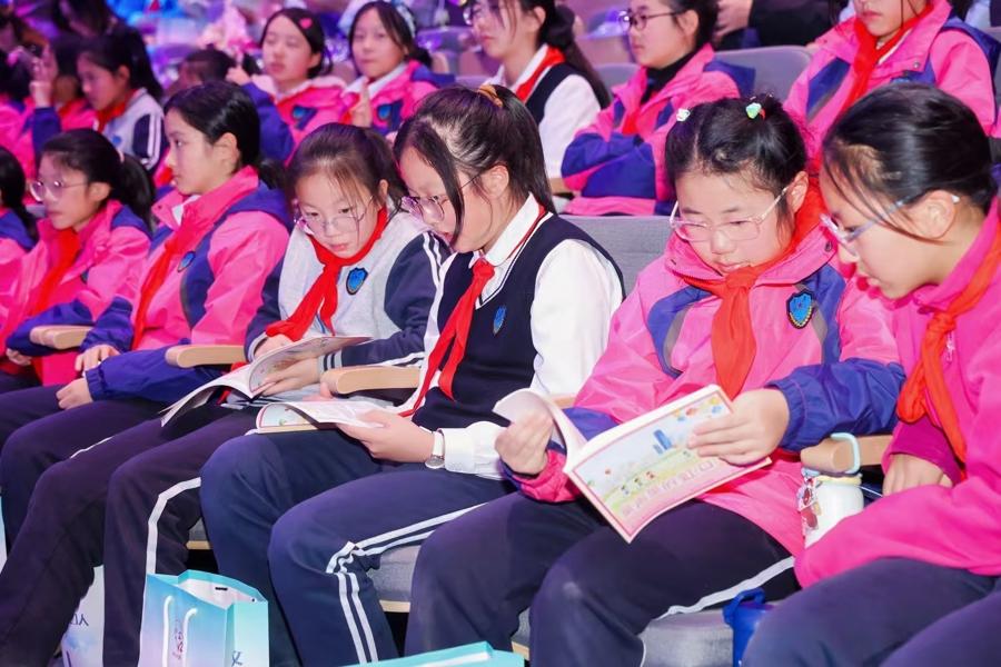 臺下觀衆在翻看《“童聲裏的虹口”原創童謠作品集》。