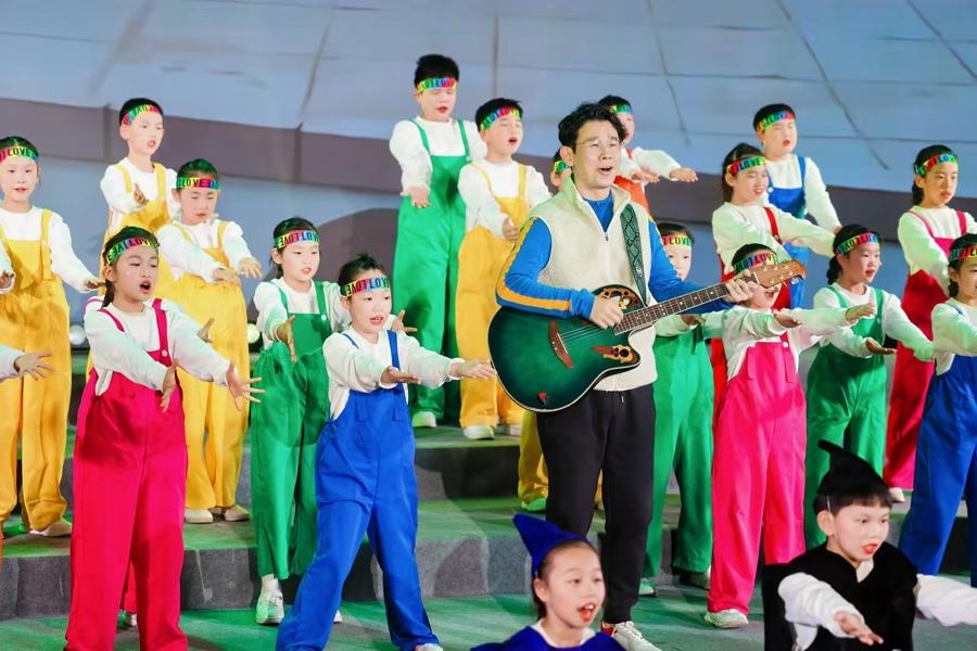 上海童謠唱作人王淵超與孩子們一起參與演出。