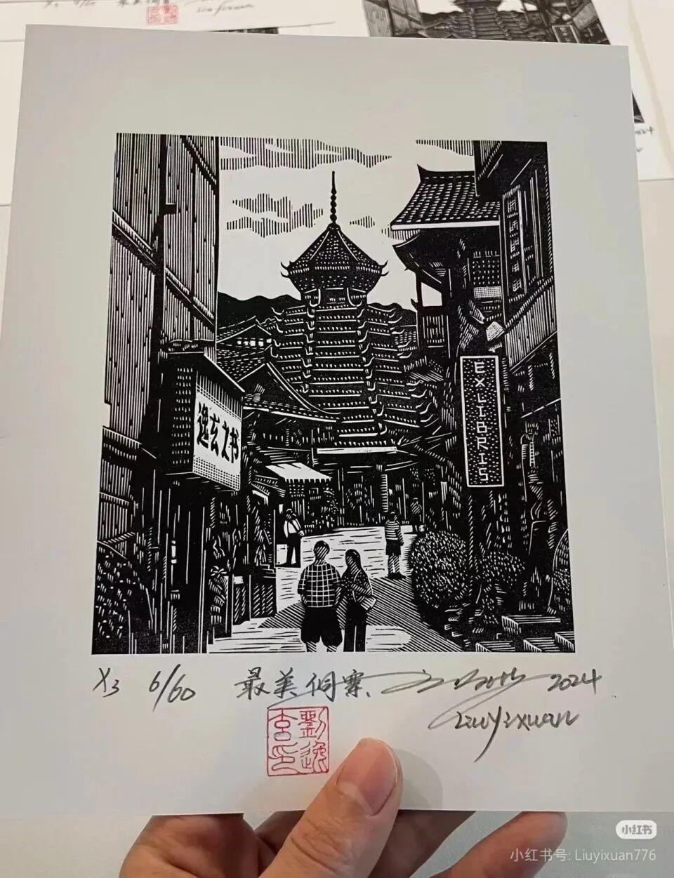 此前,劉先生稱這幅版畫作品是他去年參加貴州省級展覽獲得的優秀獎作品,同時被六盤水美術館收藏。有網友把圖片發來詢問,他才發現自己的作品被抄襲了。