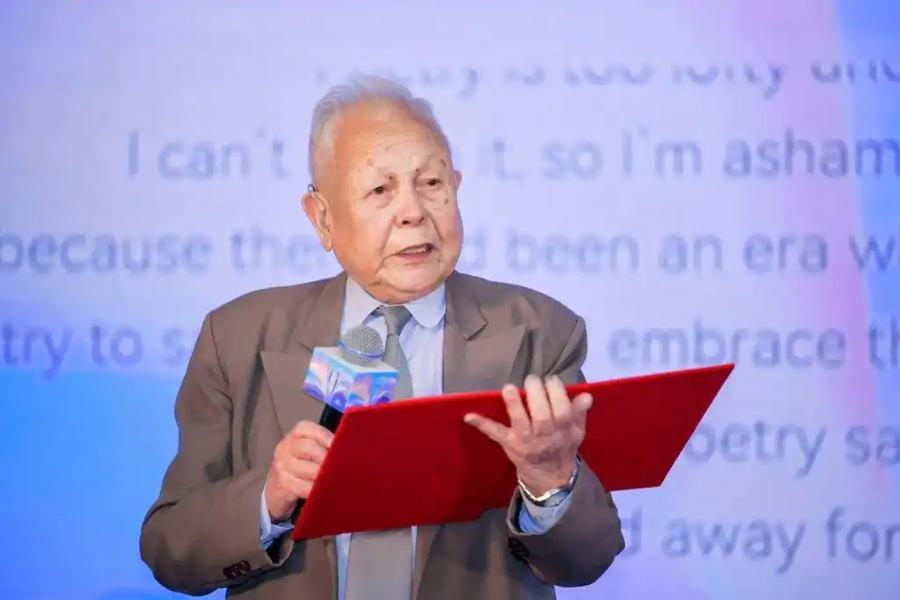 ▷93歲謝冕獲上海國際詩歌節金玉蘭獎。第十屆上海國際詩歌節開幕式暨“金玉蘭”詩歌大獎頒獎典禮近日在上海徐匯濱江的遊輪上舉行。93歲的中國詩人、北京大學教授謝冕榮獲本屆金玉蘭國際詩歌大獎。 他在獲獎感言中說道:“我研究了一輩子詩歌,詩歌的另一個名字是自由。”