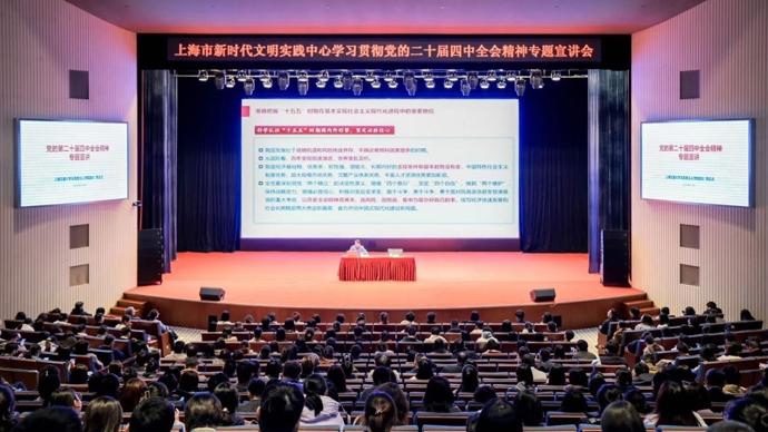 爲深入學習貫徹黨的二十屆四中全會精神,進一步提升基層宣傳隊伍的理論水平,市精神文明辦今天在浦東新區新時代文明實踐中心舉辦上海市新時代文明實踐中心學習貫徹黨的二十屆四中全會精神專題宣講會。