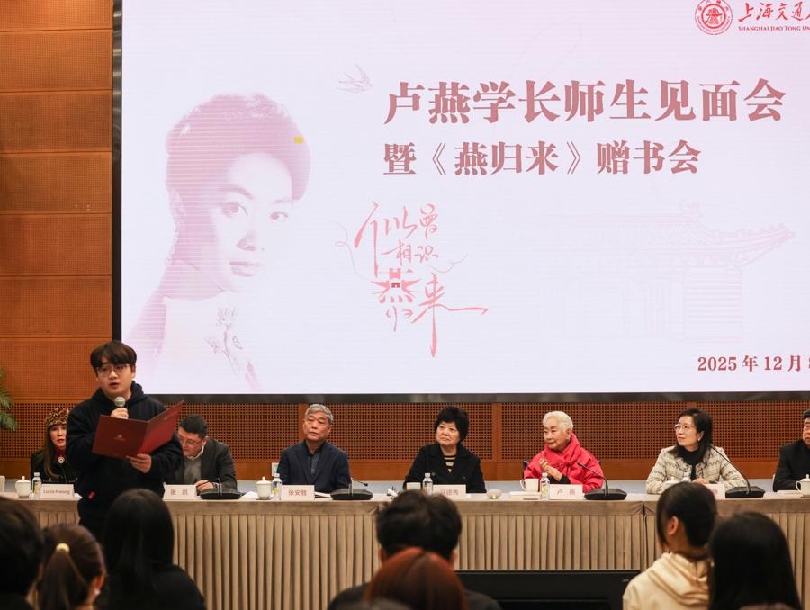 12月8日,百歲傳奇影后、上海交大1945級財務管理專業校友盧燕,攜家人好友重返母校。一場別開生面的師生見面會暨《燕歸來》贈書會在閔行校區文博樓會議中心舉行。盧燕與師生們齊聚,共憶在校時光,暢談藝術人生,傳遞跨世紀的赤子情懷與文化擔當。