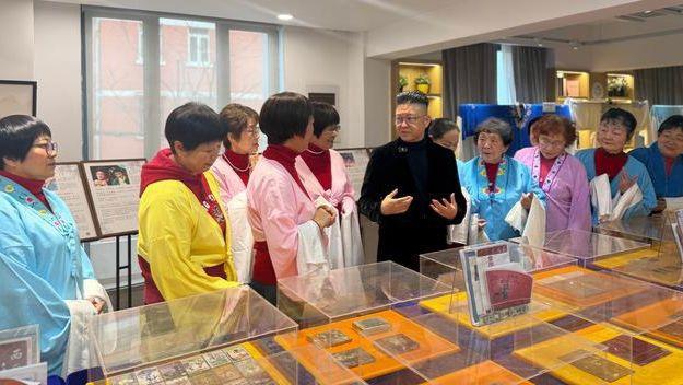 在開展儀式上,上海越劇院國家一級演員、“藏·越——越劇藝術藏品巡迴展”策展人齊春雷和前來的越劇愛好者們進行了良好的互動與交流,隨後,大家一同參觀了“藏·越”巡迴展的展廳。