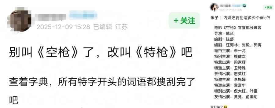 電影《空槍》12月9日官宣陣容。從影片題材到主創陣容,本該是一次令人期待的官宣,卻因演員表裏眼花繚亂的“創新頭銜”引發爭議。