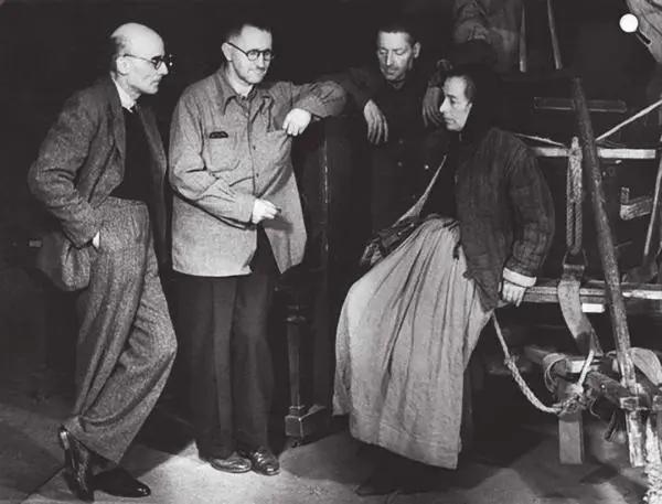 布萊希特(左二)在排演《大膽媽媽和她的孩子們》