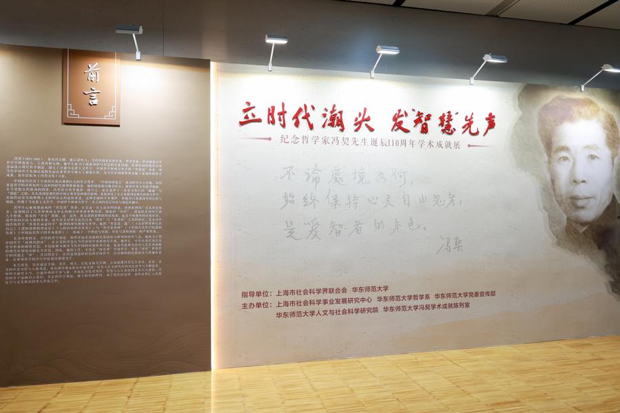 本次展覽是聚焦馮契學術貢獻的社科普及展,策展兼具學術性、文獻性、通識性和教育性。通過思維導圖、命題梳理、原文徵引、過程還原等方式,將抽象的哲學思想過程化、可視化,簡明清晰地呈現了馮契哲學思想的結構脈絡和發展歷程。